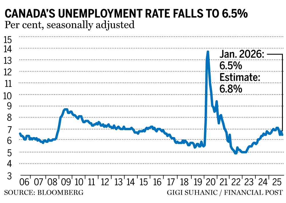 Canada's unemployment rate drops to 6.5% despite economy shedding 25,000 jobs