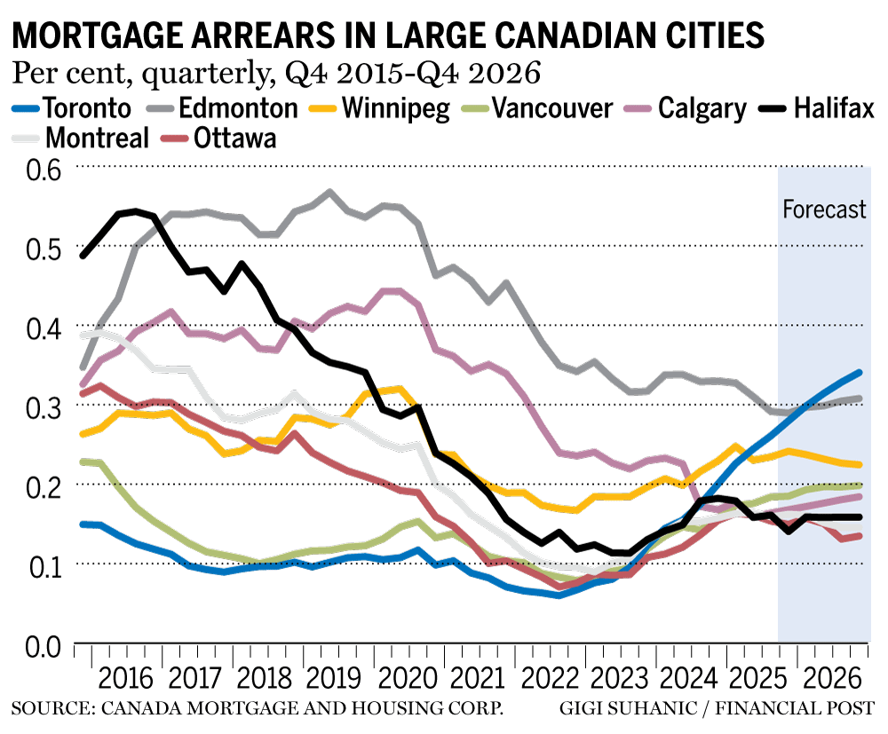 “Delinquency pressures in the GTA are expected to remain elevated throughout 2026,” CMHC said.